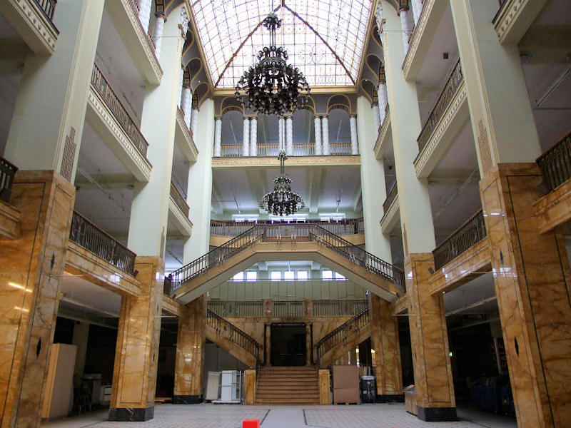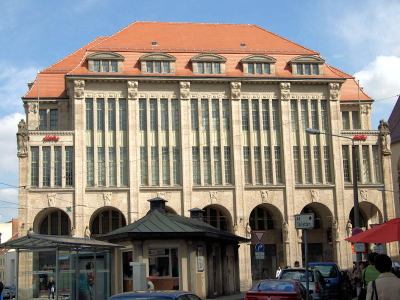 Fassade nach dem Vorbild des Kaufhauses Wertheim am Leipziger Platz in Berlin (Arch. Alfred Messel)